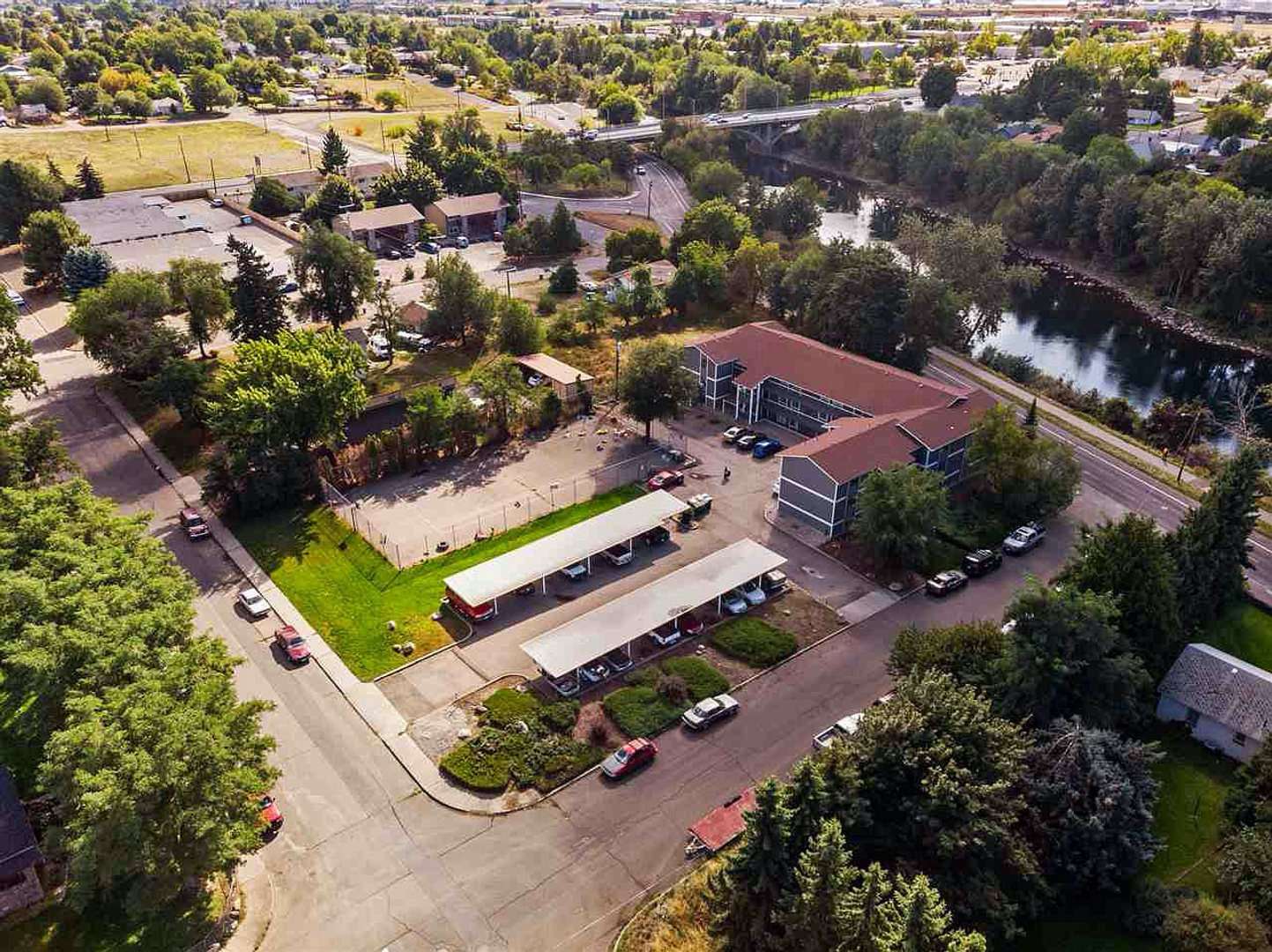 Lovely riverfront property near Gonzaga and SCC. Spacious units with river views. Walk the Centennial Trail. Covered parking, sports court, a/c, d/w, on-site laundry. Modern floor plan with designer flooring, paint, and cabinets.