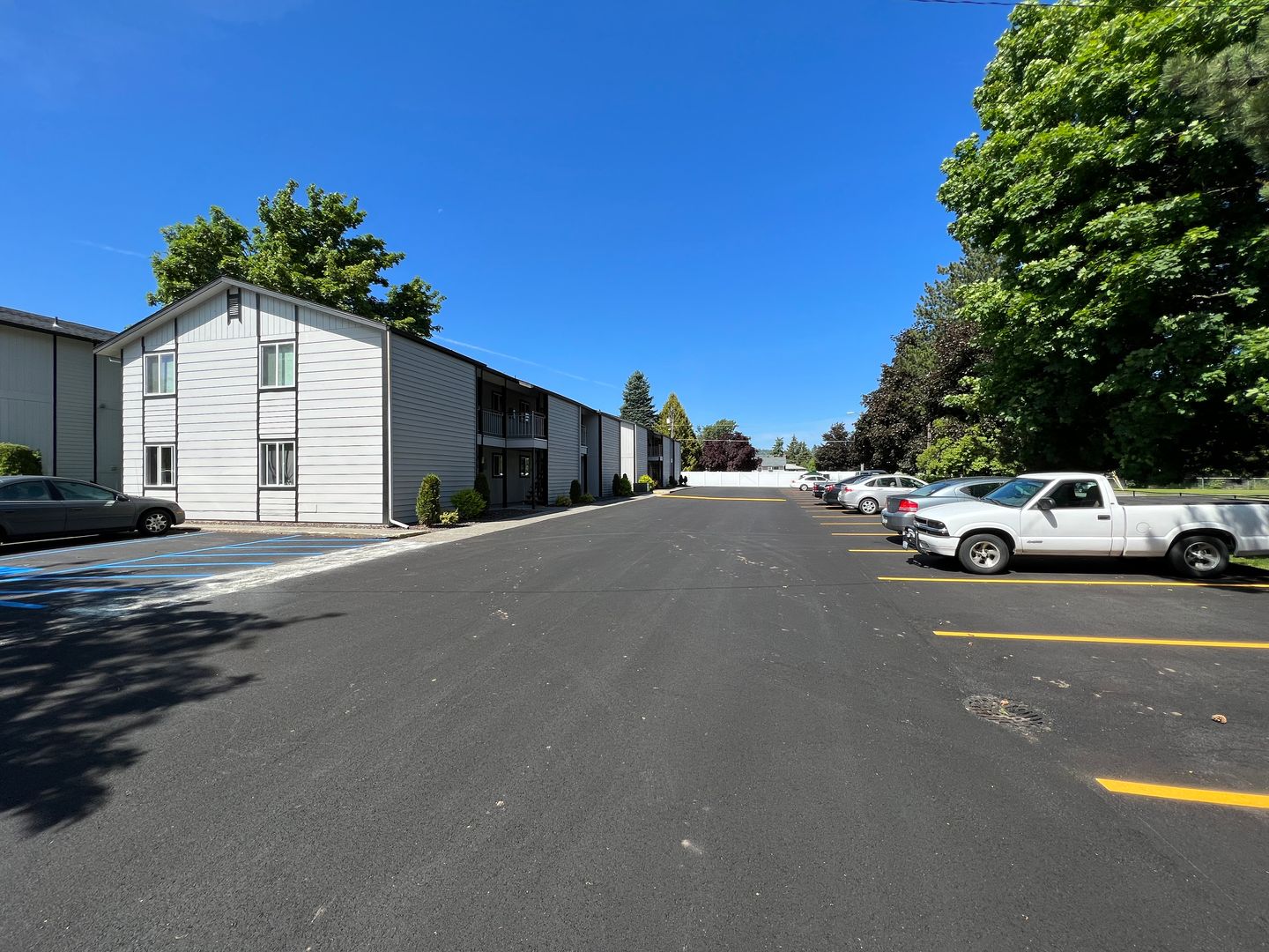 -Modern Renovations: Brand-new interior and exterior updates, including new building paint, landscaping, asphalt parking lot, fenced dog park, and children's playground