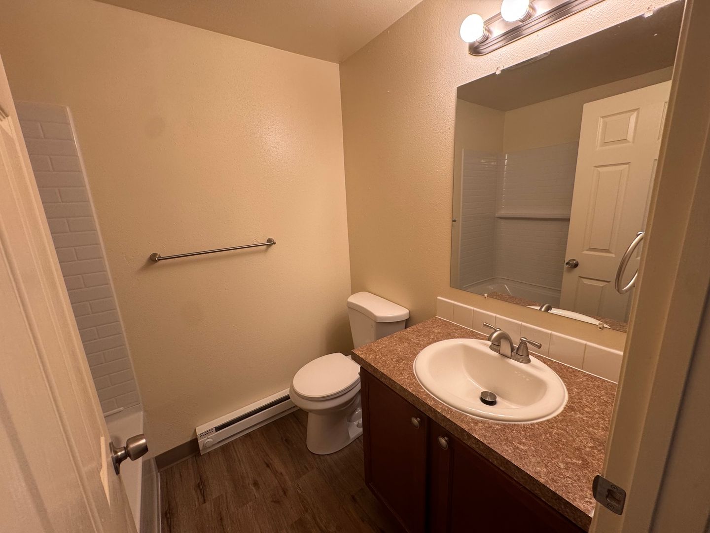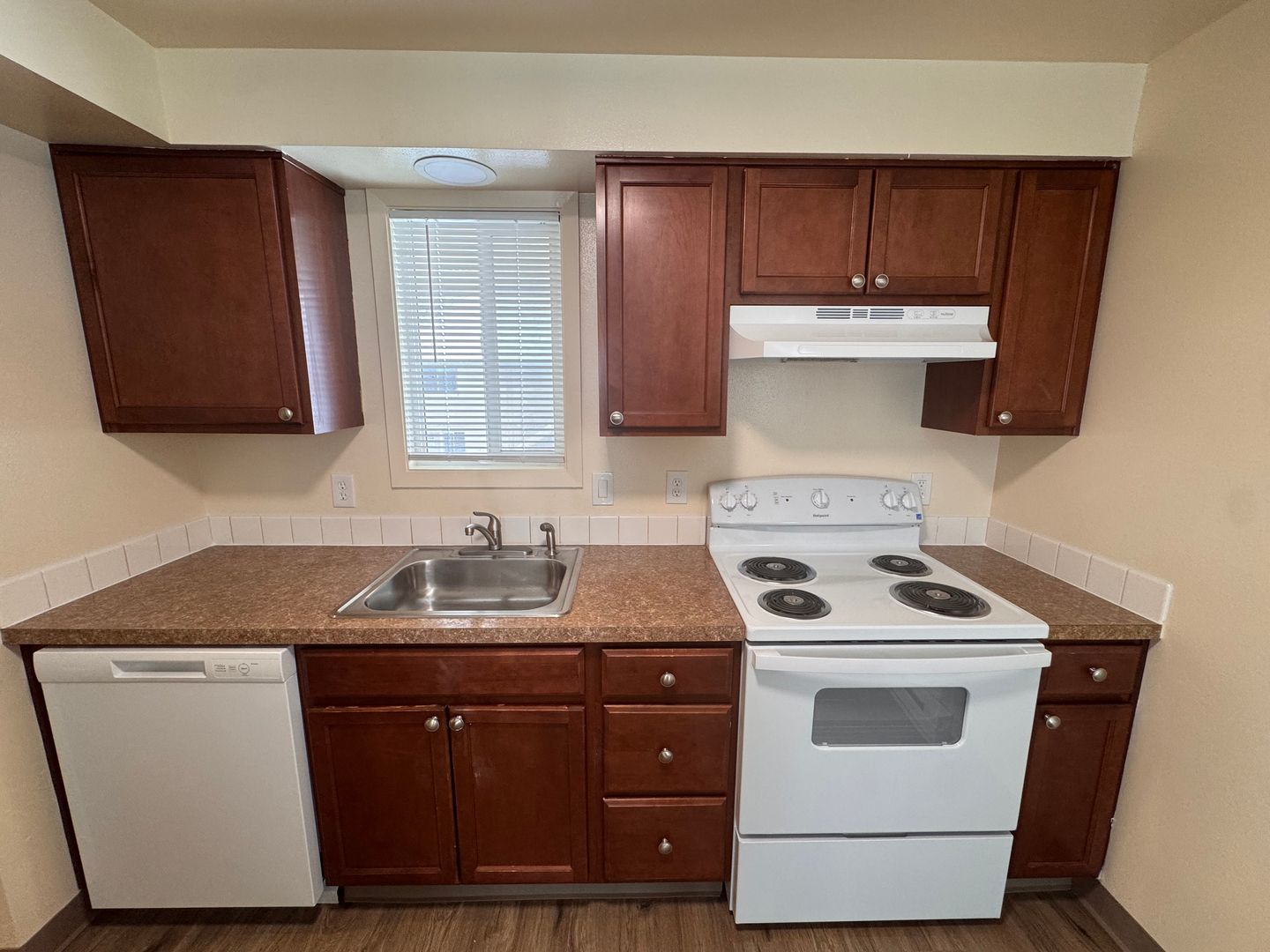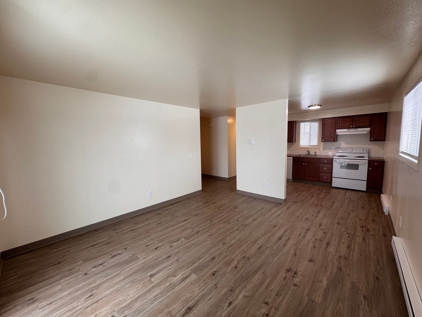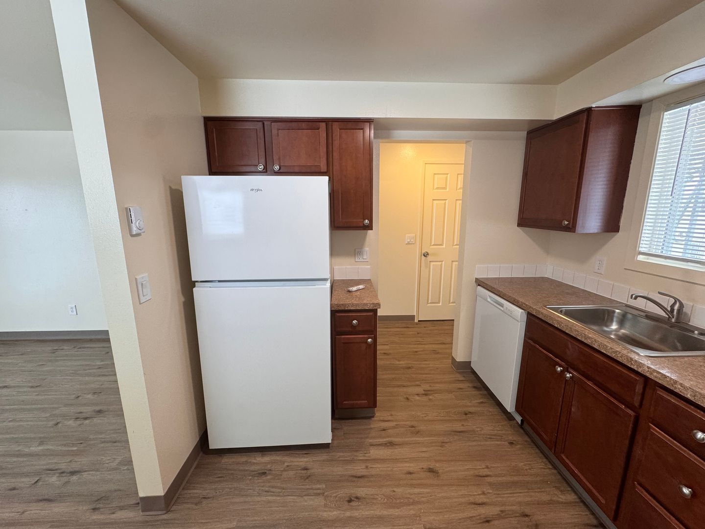 Lovely modern two bedroom unit. Quiet location off the main road and away from traffic. Handsome LPV flooring in main room with lush carpeting in the bedrooms. Patio, A/C, D/W. Onsite laundry. Large green-space and plenty of parking.